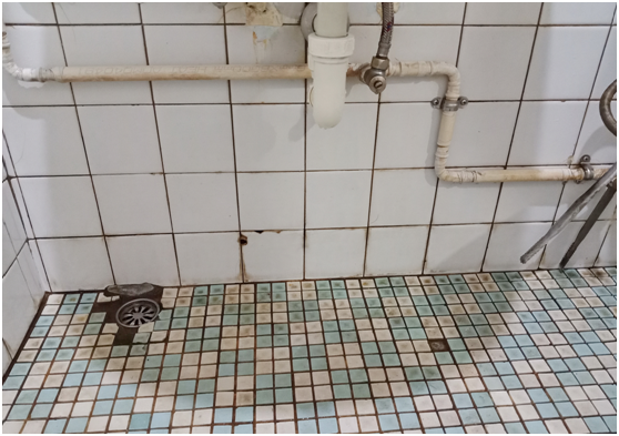 但一切都是假象!地板和牆壁磁磚其實很髒…