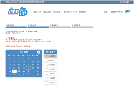透過官網進行線上預約https://justclean.powertw.com.tw/preorder/,流程簡單方便。