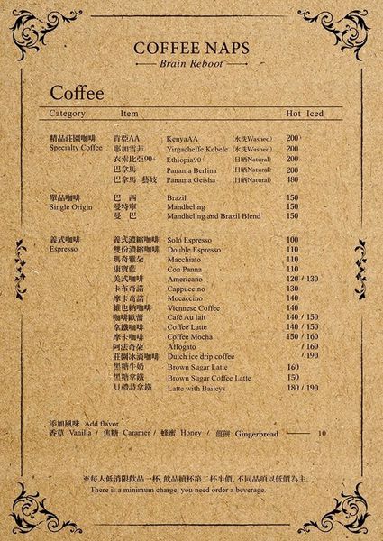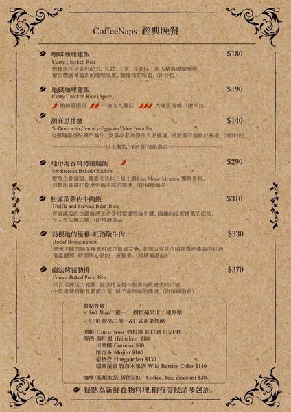 Coffee Naps 蓁澄咖啡手作坊 晚餐與午餐的菜單價錢不太一樣 ,晚餐比午餐便宜喔 !!