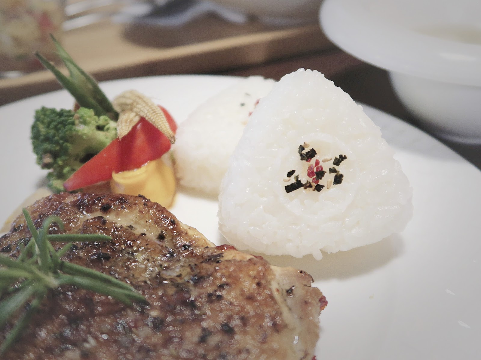 主食米飯的份量剛好,上面的梅子海苔能解油膩,搭配得宜,米飯的份量可依照客人的需求彈性調整,是店家的另一個小感心!