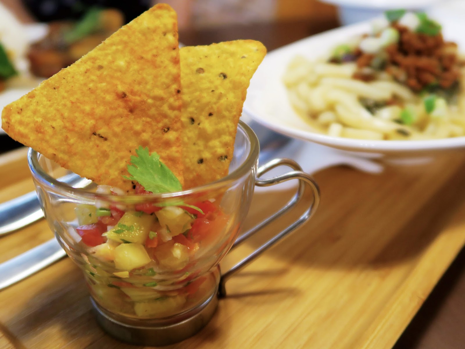以TABASCO與獨門醬料製成的莎莎醬,味道濃郁,並帶有清新的果香味,搭配玉米脆片入口,能提升味覺與香氣的層次!