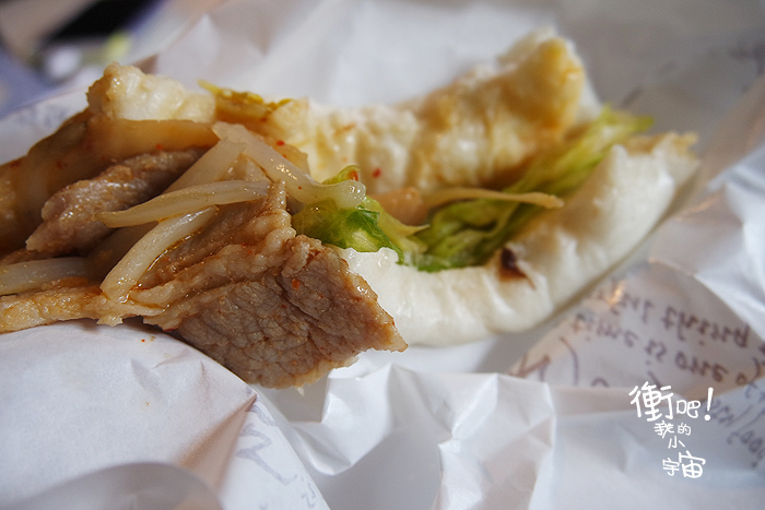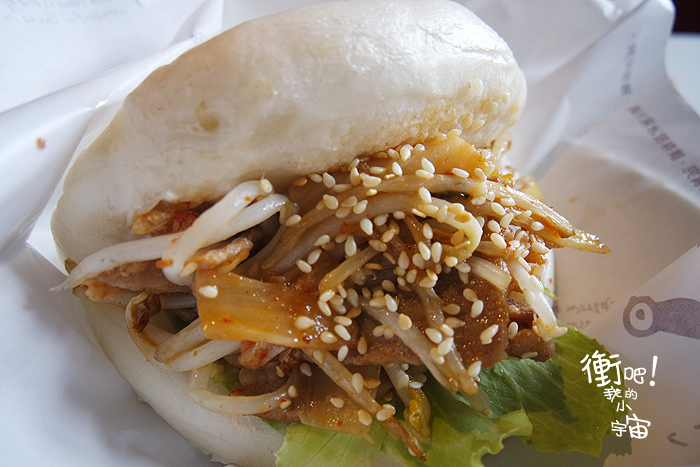 是屬於韓式口味的創意刈包,老闆說這款刈包很受女性顧客喜歡,所以我也點來吃看看