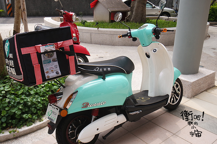 店門口還停了一輛藍綠色的摩托車,相當顯眼,是Tiffany藍綠色的外送專用車