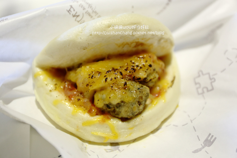 『番茄肉丸炙燒起士包』,採用台灣上等豬肉手打自製的肉丸,搭配費時熬煮的番茄醬汁與炙燒起士,也是店內人氣冠軍