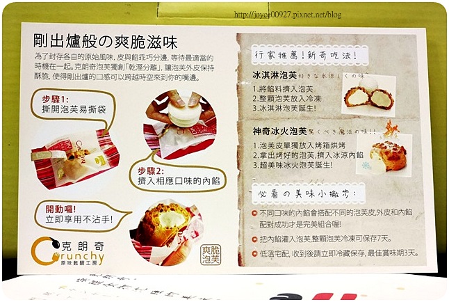 店家很貼心,盒裝裡面放了一張食用泡芙的操作SOP