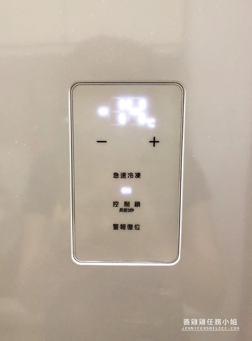 冷凍櫃上的操控面板很簡潔,操控很簡單,基本上就是很直覺的使用就對了!溫度部份可以從-14度調整到-21度最低,像是牛排最適合的溫度大概-18度,這就可以調整,讓牛排處在最棒的冷凍溫度環境中。