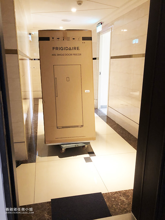 我的是400L的,安裝師傅會送到家門口,並且幫你安裝好把手。看這體積好大阿,師傅好辛苦,幸好Jennifer家有電梯...