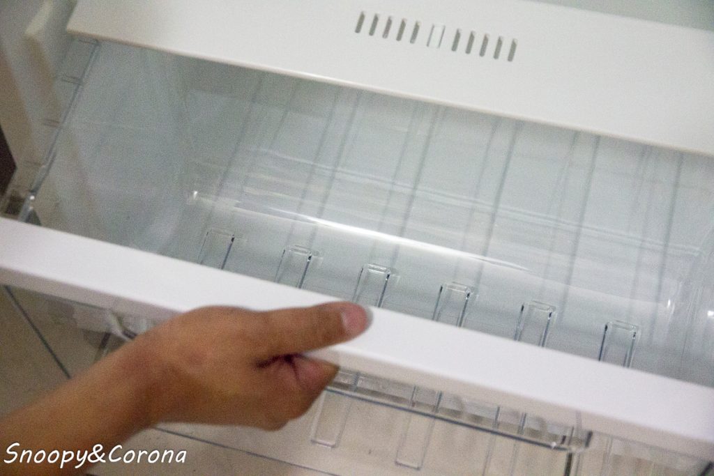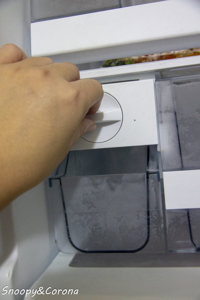 製作好的冰塊可以從製冰盒旋轉按鈕將冰塊儲存至下方的儲存盒方便取用。
