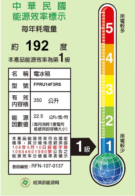 右邊則是FRIGIDAIRE富及第350L 省電冷藏冰箱