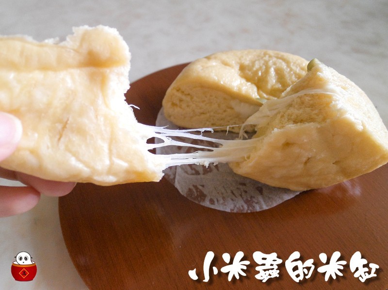 將熱呼呼的饅頭剝開後,裡面包的MOZZARELLA起司還有牽絲的效果耶!!