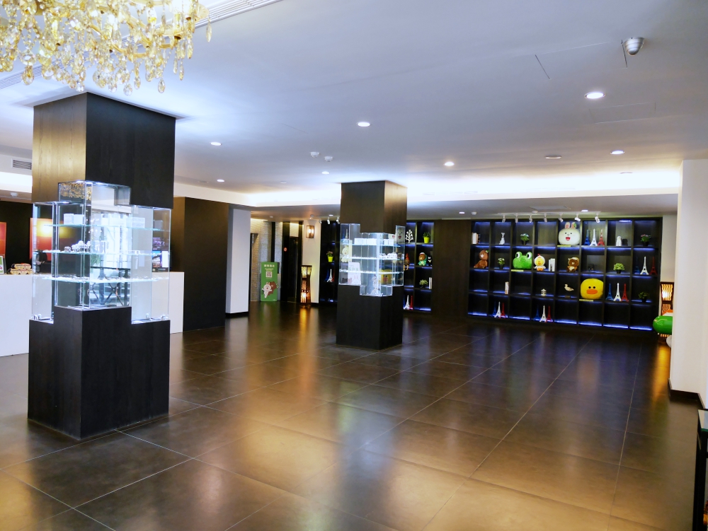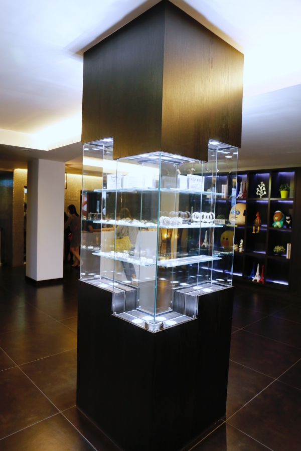 幾個柱子玻璃櫃擺放的是世界各地的精品