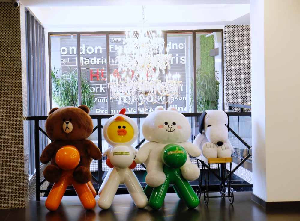 角落這個可愛小熊燈&LINE的看板好適合拍照