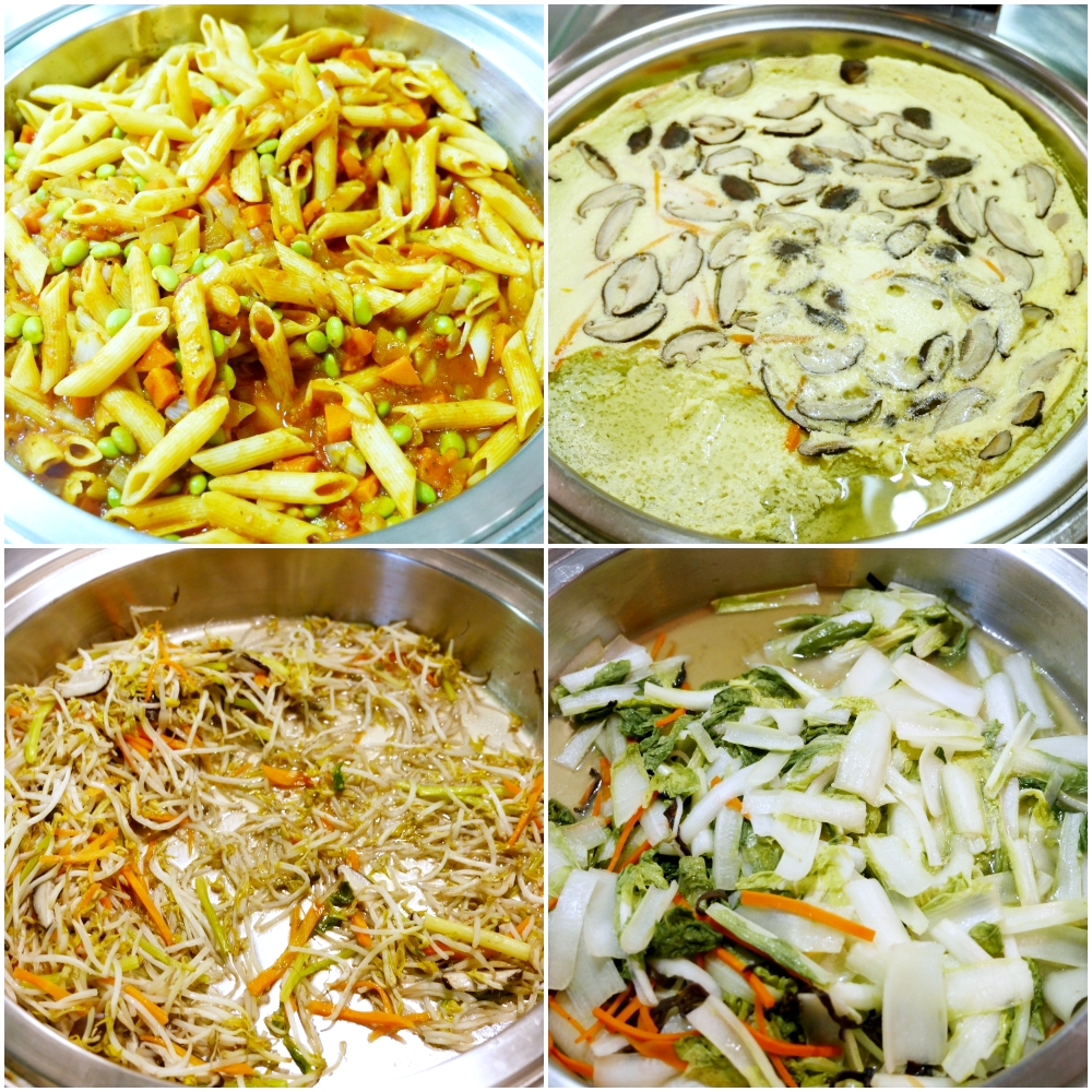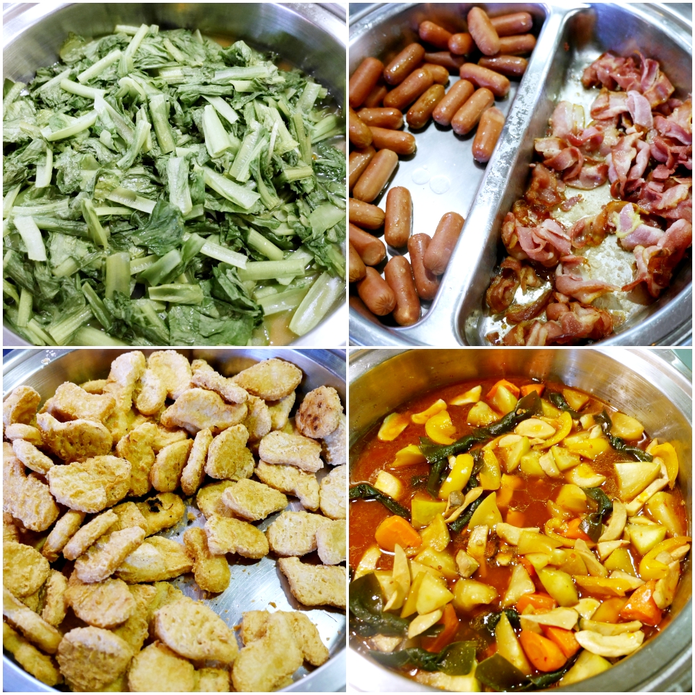 炒青菜~煙熏香腸培根~炸雞塊~燉煮時蔬