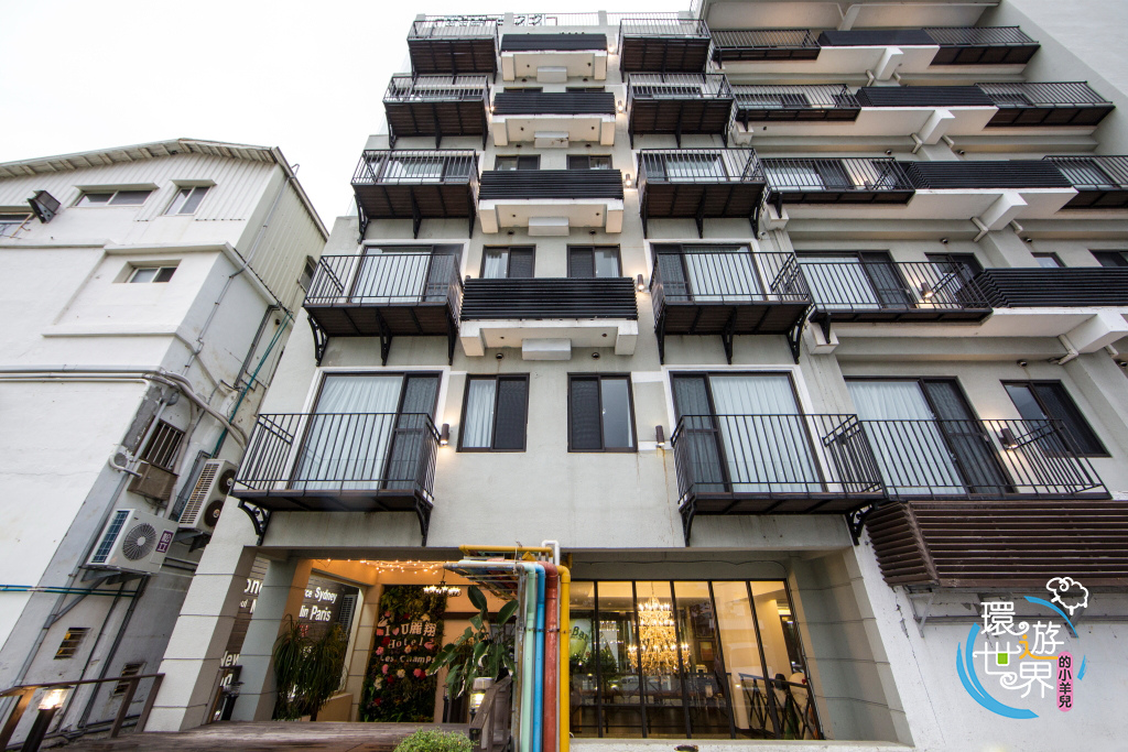酒店建築外觀走的是經典浪漫法國風,設計上可見黑鐵欄杆的窗景,廣場大時鐘。