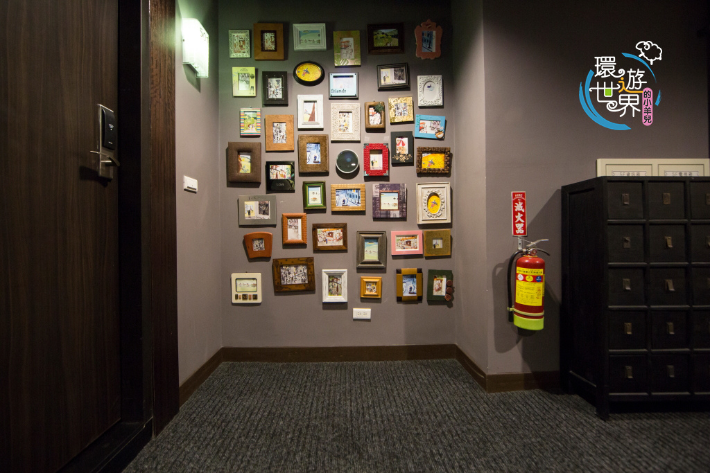 走出電梯會看到牆壁上掛著許多相框,營造出一種懷舊復古的氛圍。