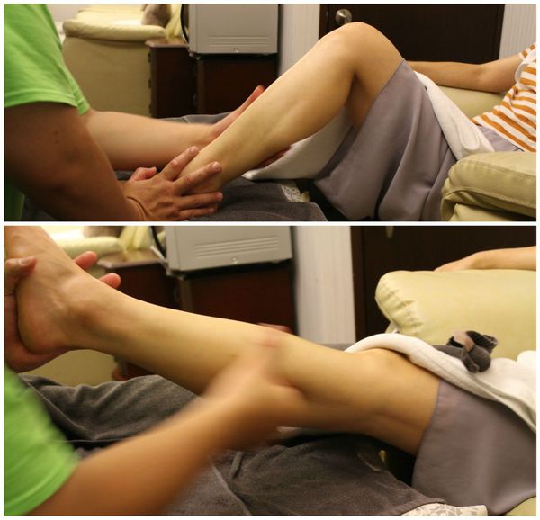師傅繼續出動手肘按壓小腿前側,非~常~之~舒~服~阿~