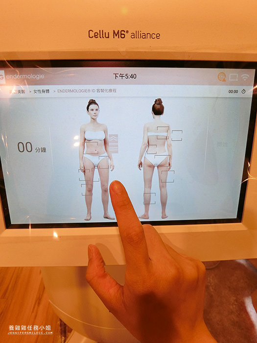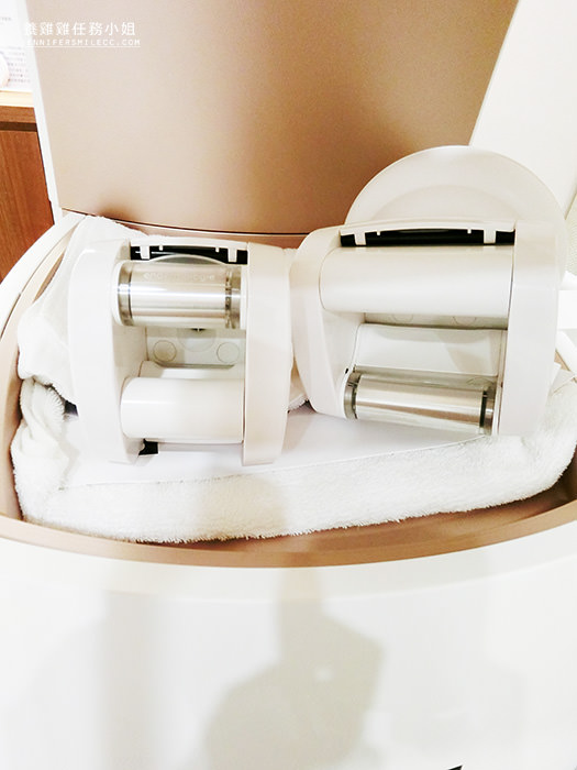 今天幫我服務的美體師非常熟練的操作儀器,今天第一次體驗要做三個部位,分別是大腿、大腿內側以及我最在意的手臂蝴蝶袖,每個部位最少須做20分鐘,這是官方建議才可以發揮效用的最低時間長度。