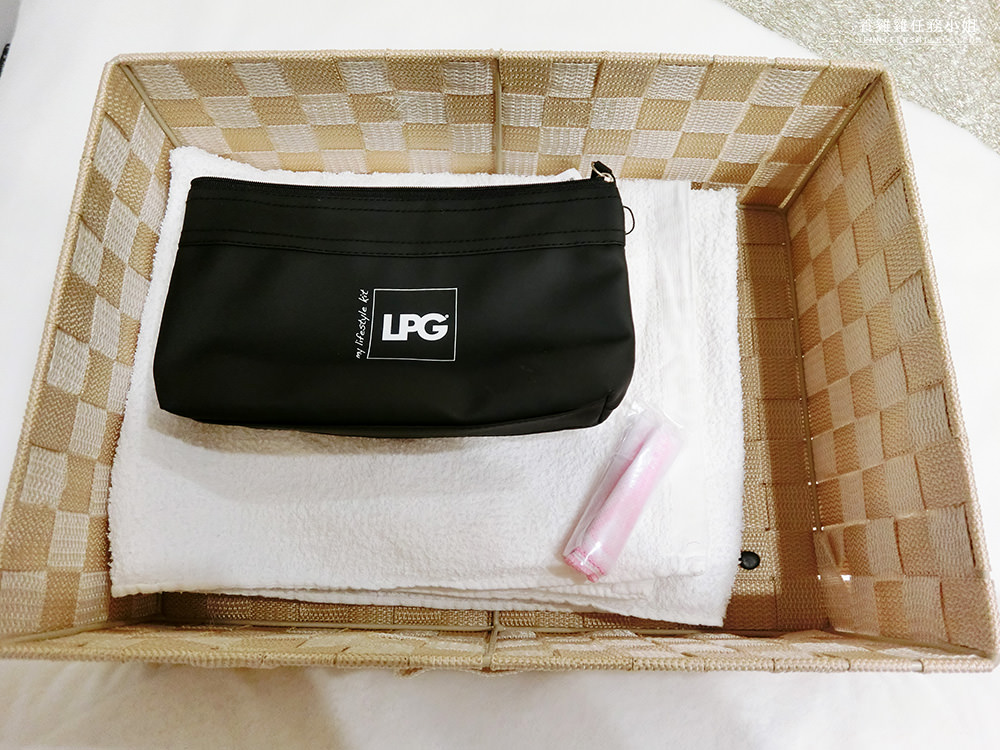 LPG有自己專用的天使衣,Keybeauty唯美講堂使用的也是正版的天使衣唷,它有點像是做成緊身衣形狀的彈性紗布,穿起來非常害羞,但是LPG請務必穿上它,除了有效降低機器頭摩擦力外,還可以讓LPG的效用延續且放大。除此之外,當然像其他SPA一樣,請換上店家幫忙準備的丁字褲喔!