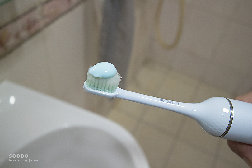 記得第一次使用前要先清洗刷頭,然後取出適量的牙膏放到嘴裡後在啟動!
