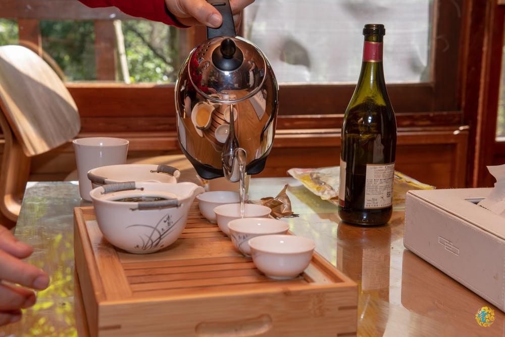 八仙山莊的小木屋都有提供高山茶葉、牛蒡茶與茶具組,也有提供礦泉水,全館使用山泉水,皆可安心食用。回房後泡個茶,三五好友閒話家常,真是人生一大樂事。