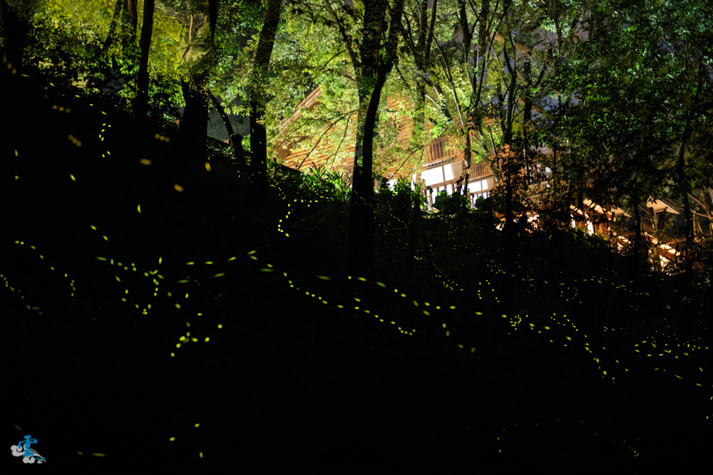 目前五月中算是螢火蟲季的尾聲了,聽從山莊人員的建議,最近又安全方便的賞螢地點是備用停車場的小斜坡,吃完晚餐散步而來,已經好多遊客在此駐足欣賞螢火蟲了說,成群的螢火蟲,在草叢中穿梭飛舞,在黑暗中閃爍螢光,甚是美麗的夜景。涼爽的晚風拂面而來,更添賞螢的樂趣。