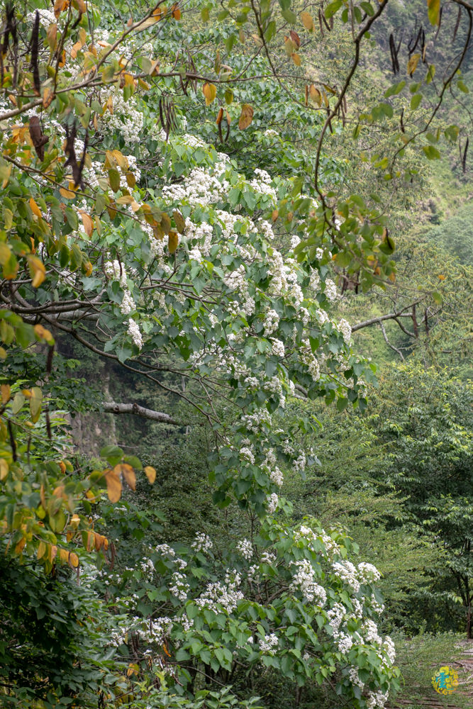 此時正值五月雪的時節,八仙山莊內處處有油桐花的美麗身影。