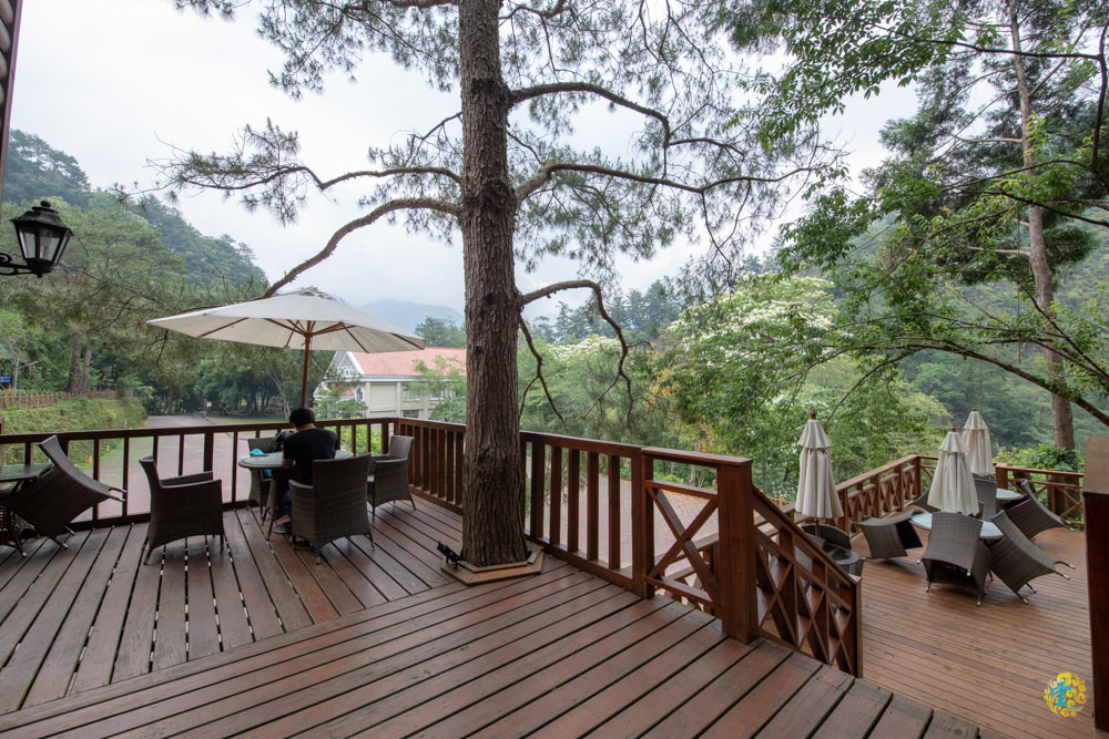 漫森餐廳旁的休憩與品茗區,凌雲一行人抵達時還空蕩蕩的,接近傍晚時分才陸陸續續有入住的房客抵達,不過隔天是週末,這兒幾乎坐滿了人,容後介紹。