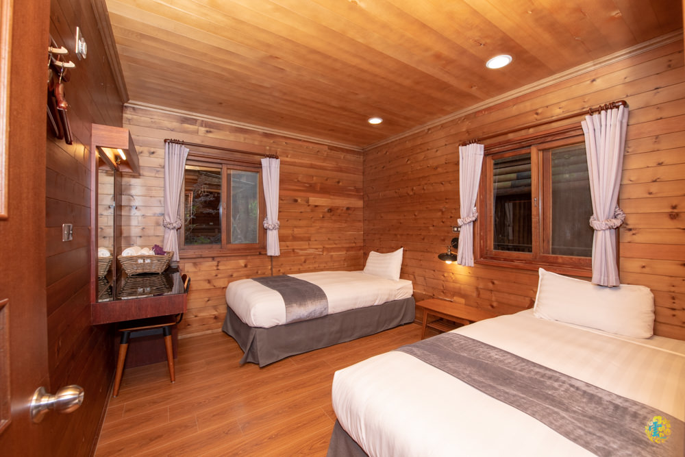 自然療癒系的精緻渡假小木屋,每間都是獨棟設計,以楠木、杉木、檜木等原木搭建而成,每間都有其不同的原木芳香氣味,凌雲此次入住的是A3楠屋。