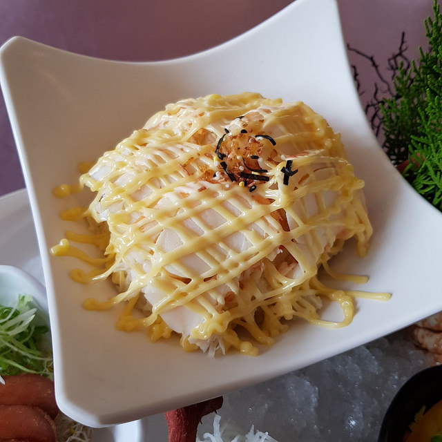 底下的干貝唇灑上一點芝麻,味道甘美濃郁,帶著點日是胡麻風味,和干貝唇本身太有的甜味,吃起來口感Q彈有勁。