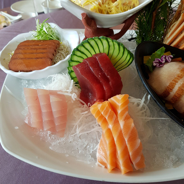 生魚片共有三種口味,每一種大概都有四片。