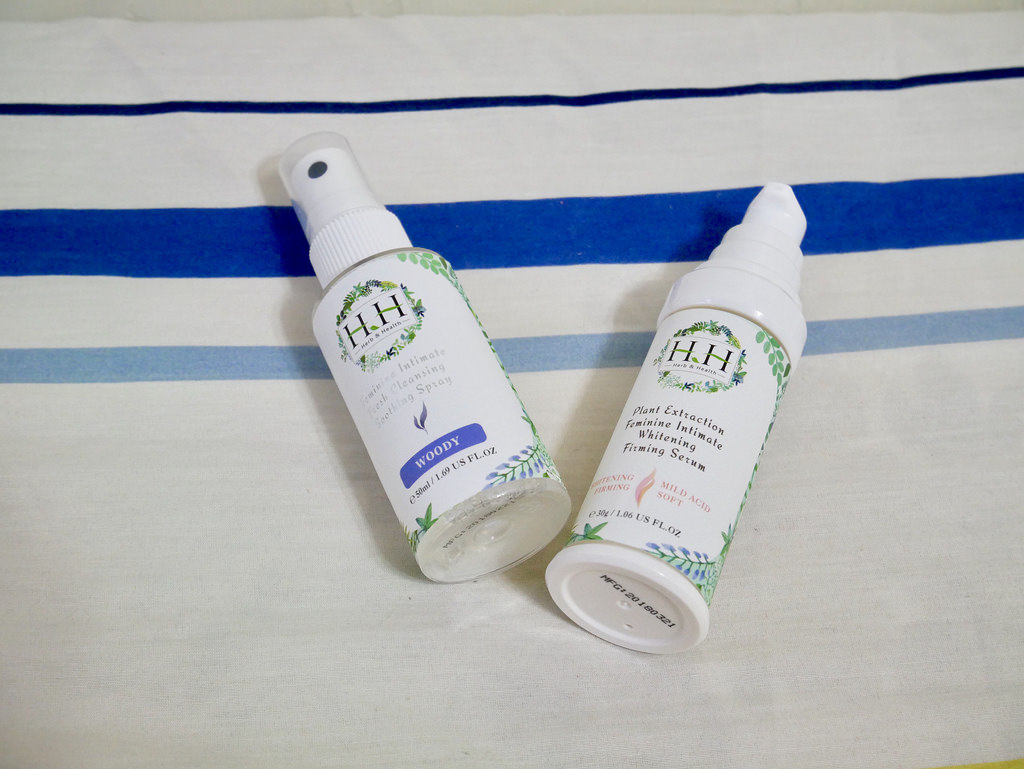 HH 私密植萃美白緊緻凝露 - 按壓式的壓頭使用上滿方便衛生 , 有含衛生署核可的美白成分"酯化維他命C"-"3-O-Ethyl Ascorbic Acid 1%",在產品包裝上有清楚的標示,就像擦保養品一樣可以安心使用