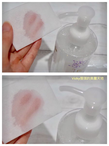 按壓三下充份沾在化妝棉上面才足夠濕潤帶走彩妝~