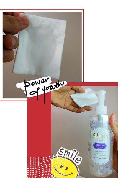 重!點!是!一定要壓超過3下,充分沾濕化妝棉喔!我個人是壓4下,不然太乾會拉扯肌膚**