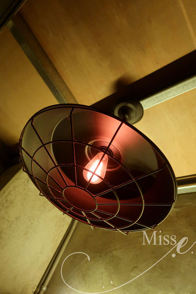 工業風的裝潢讓人感到非常自在,連廁所的燈都美!