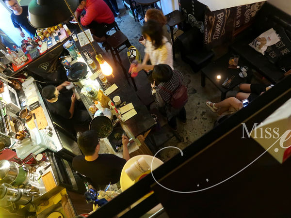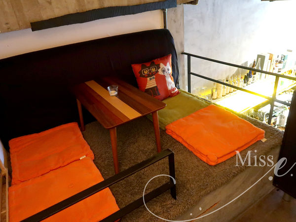 裡面的位置有著吧台、高腳桌、皮製沙發及二樓半開放式包廂的榻榻米、懶骨頭,
