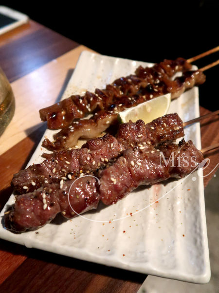 鹽烤牛肋串燒(2串NT$150)帶有濃厚牛肉香及豐富油花的牛肋條,