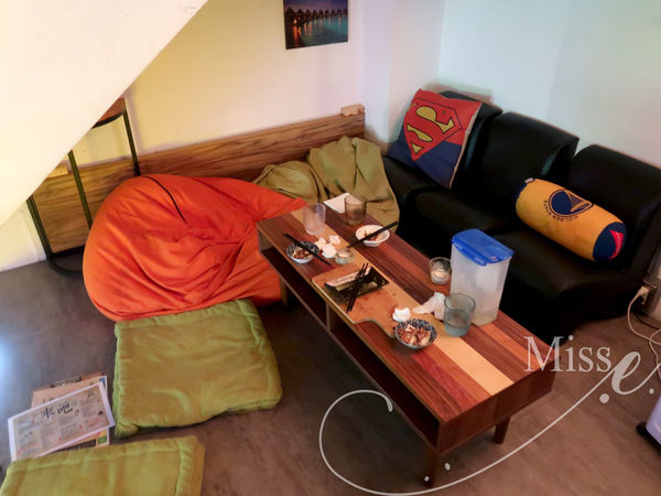我們這次原本想坐樓上的懶骨頭沙發區,可惜太晚訂了~