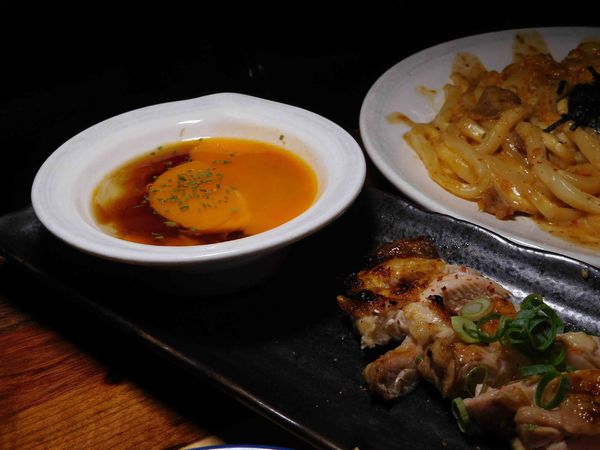 沾醬是 蛋黃醬油 以日式醬油+生蛋黃的醬汁