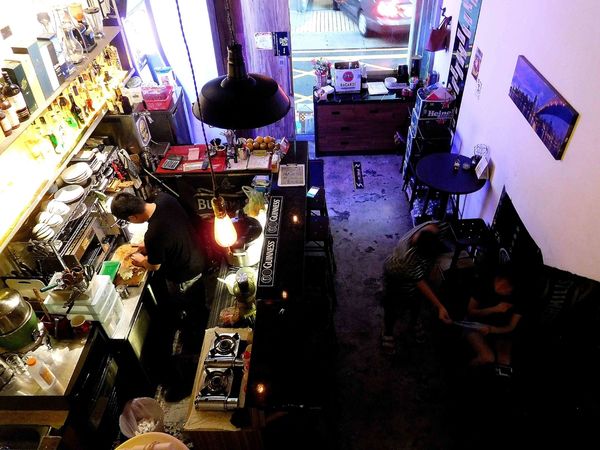 從小閣樓拍下一樓吧檯區的景致 ,雖然不是華麗的 ,但別有一番氛圍