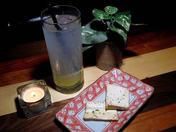 沒多久上了飲料跟 自家製醬漬乳酪 ,不得不說 來吧 串燒居酒屋 的乳酪好好吃喔 !!(扭)