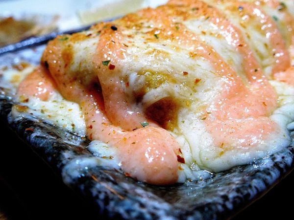 蛋好嫩好嫩呢 !!搭配著明太子醬的香氣與起司牽絲的口感