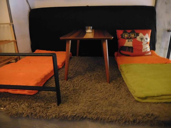 台北有一家 "秘密基地"居酒屋 ,整間店非常非常小間啊 !!超級迷你 ,還有一個小閣樓 ,一樓的沙發區可以躺著搖來搖去