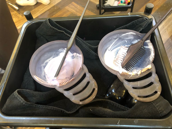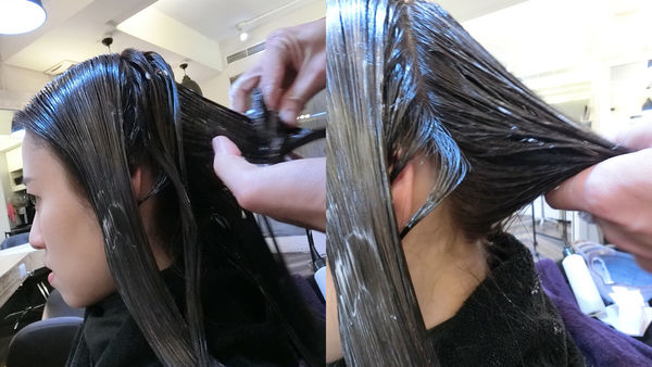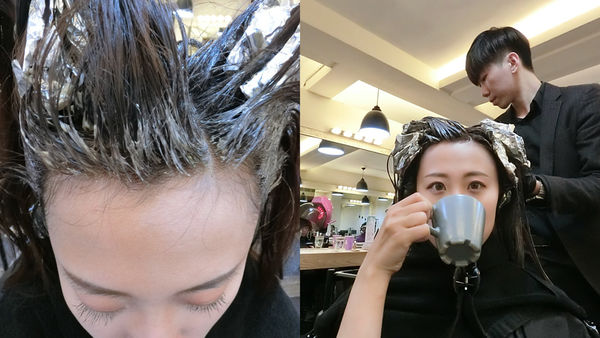 Kevin 就在幫用褪色膏再挑染,讓頭髮更有層次