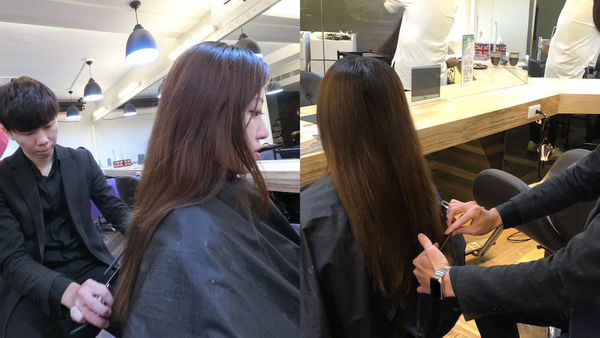 再染之前,Kevin 看不下我的髮尾太毛躁先幫我修一點