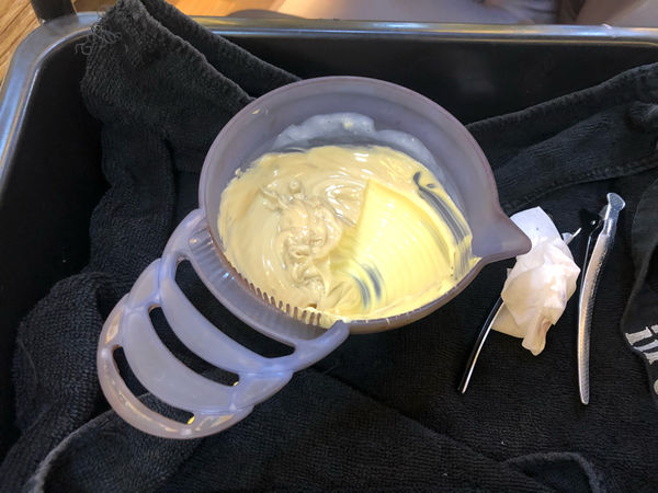 我有布丁頭,他也先把我的布丁接合,才不會染劑上上去因為底色不同,導致頭髮有兩種顏色