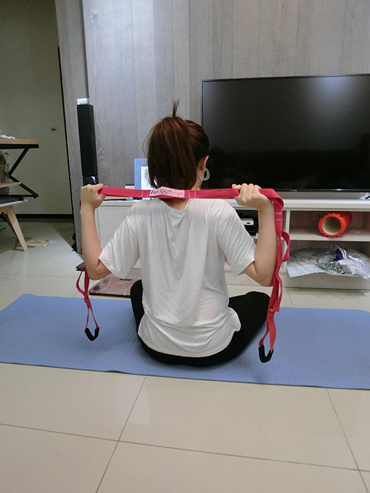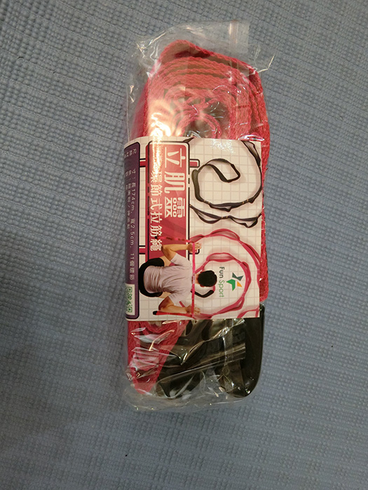 我很喜歡我的這個桃紅色的『立肌靈-環節式拉筋繩』,所謂工欲善其事,必先利其器。