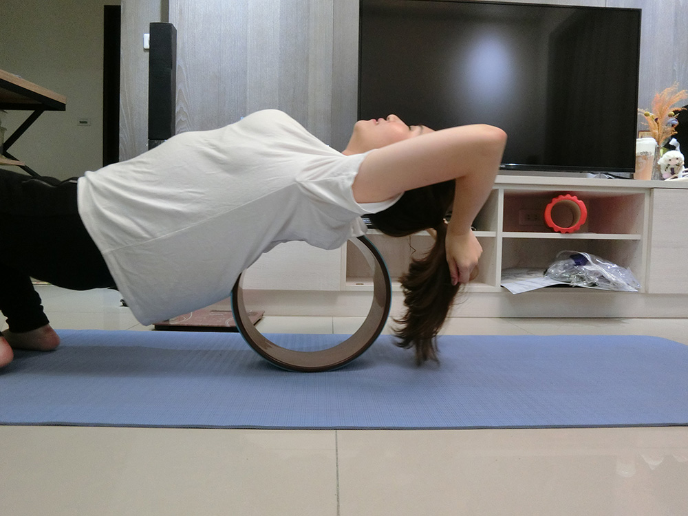 我最喜歡用『美一圈瑜珈輪』延伸我的背部,光是滾動就超級舒服,我覺得每個家裏面都應該有一個,很值得!