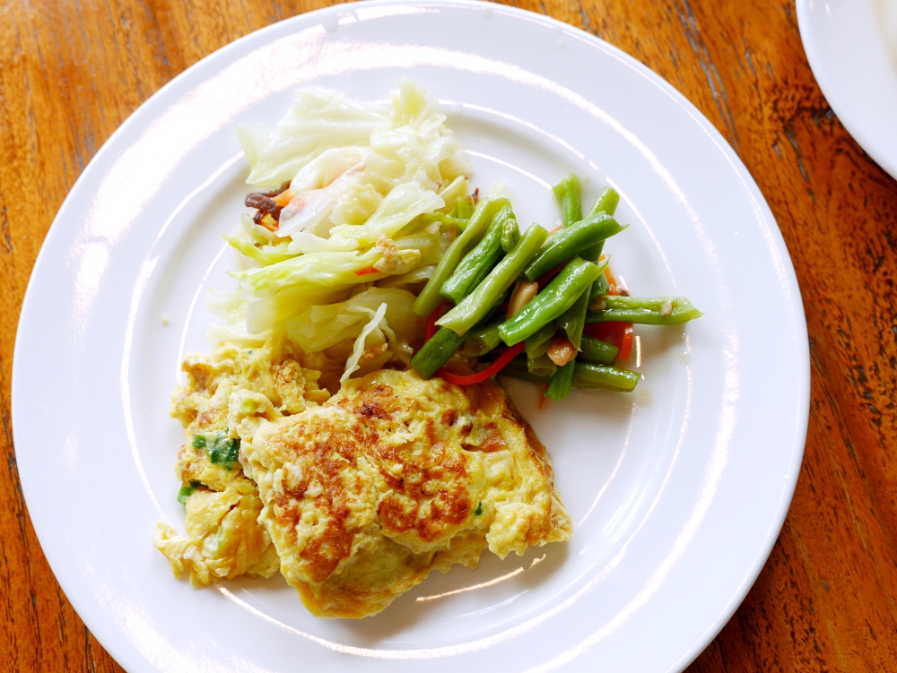 煎蛋&炒高麗菜 &四季豆吃好多盤