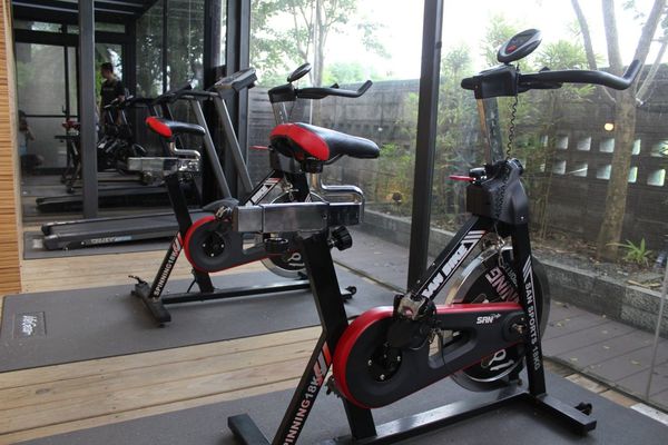 在會館側邊還有一間相連但獨立的健身房空間,有兩台飛輪及一台跑步機。