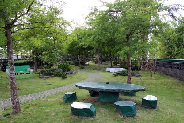 整棟會館前後方圍繞室外庭園,尤其是後方有個很大的峇里島式花園。
